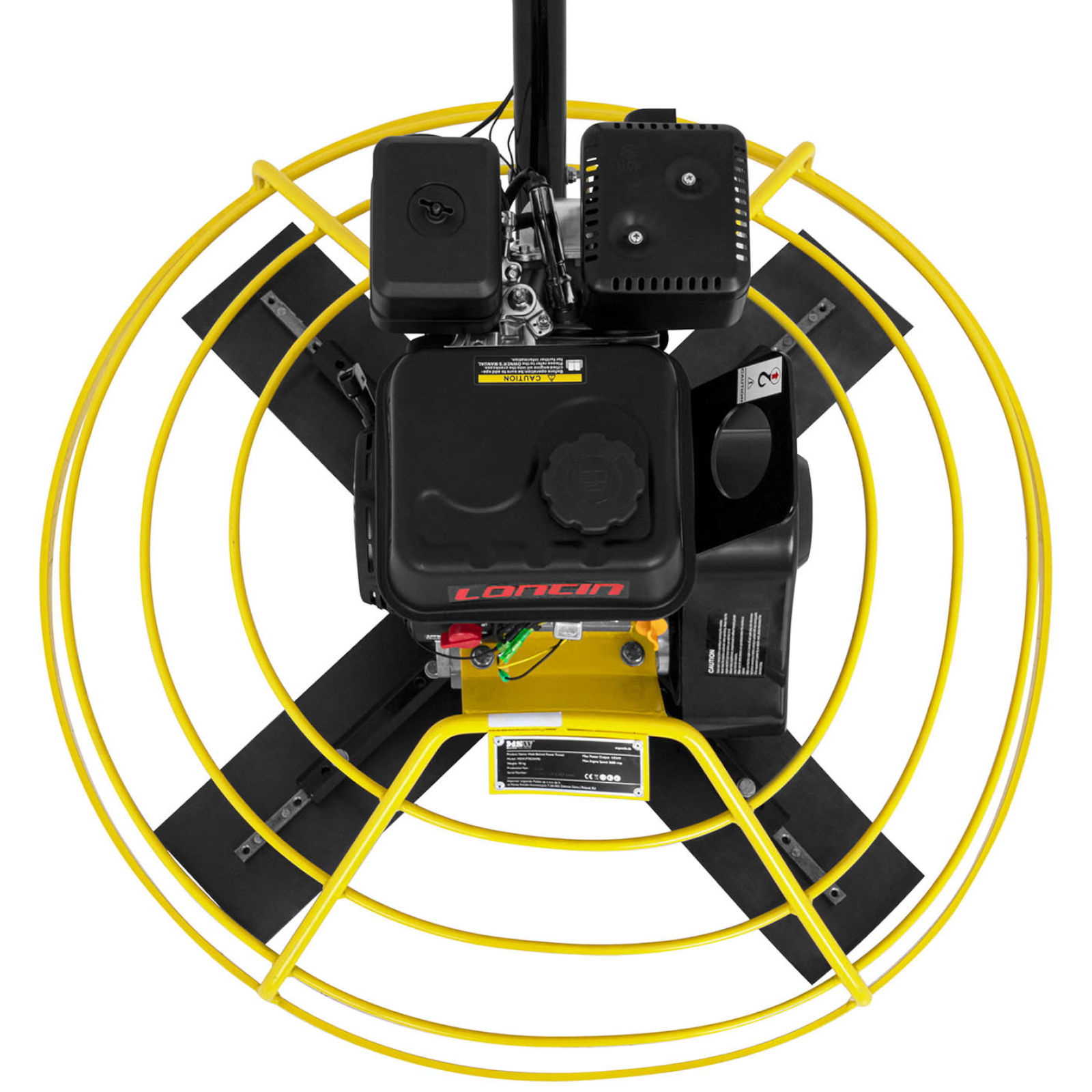 Urządzenie posiada silnik o mocy 6,5 KM, który rozpędza łopatki urządzenia o długości 35 cm do prędkości 4370 obr./min. Talerz zacieraczki skutecznie wyeliminuje pozostawienie śladów na betonie. Bezpieczeństwo pracy zostało zagwarantowane poprzez dźwignię odłączającą zapłon oraz klatkę chroniącą łopaty, zwiększającą stabilność oraz redukującą wibracje. Pasek silnika jest całkowicie obudowany. Regulowane uchwyty zwiększają komfort pracy.