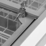 Zamrażarka skrzyniowa marki Royal Catering to nowoczesne rozwiązanie umożliwiające mrożenie i prezentację mrożonek klientom w restauracjach typu fast food, barach z przekąskami, kuchniach hotelowych czy w firmach cateringowych. Została wyposażona w termostat i przesuwane szklane drzwi. Zamrażarka o pojemności do 450 l oferuje mnóstwo miejsca do przechowywania zamrożonej żywności lub pojemników. Duże przesuwane szklane drzwi pozwalają skontrolować zawartość komory bez otwierania skrzyni. Czynnik chłodniczy wykorzystany w urządzeniu to R290, który posiada doskonałe właściwości termodynamiczne i zachwyca wysoką efektywnością energetyczną. Wbudowany kompresor o mocy 340 W gwarantuje szybkie osiągnięcie i stabilne utrzymanie ustawionej temperatury. Temperaturę można regulować w zakresie od -15 do -18°C. Termostat kontroluje temperaturę, a tym samym zapewnia wyjątkowo niskie zużycie energii. Urządzenie wyposażono w 5 praktycznych koszy, które umożliwiają przechowywanie mniejszych produktów. Dzięki stalowej obudowie i wewnętrznej powłoce z tłoczonego aluminium zamrażarka gwarantuje wysoką solidność i trwałość. Aluminium jest idealnym materiałem do stosowania w temperaturach poniżej zera, ponieważ doskonale zatrzymuje zimno. Wysokiej jakości metale są również szczególnie łatwe w czyszczeniu. Białe i szare powierzchnie zawsze zapewniają profesjonalny wygląd. Sprzęt można bez wysiłku przestawić na lekkobieżnych kółkach.