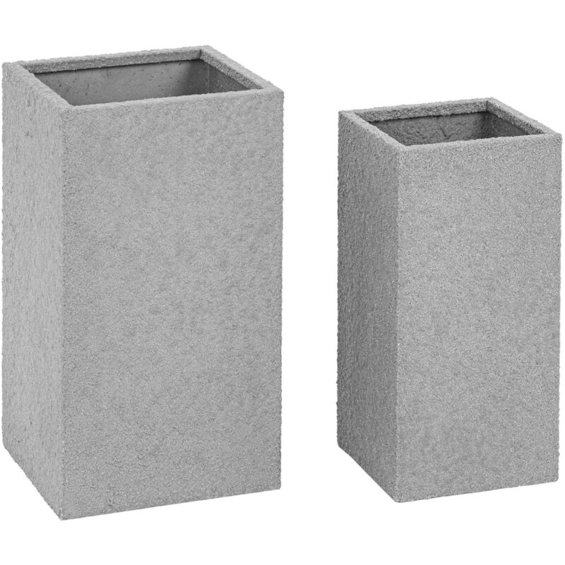Zestaw 2 donic marki Royal Catering sprawdzi się na tarasie, w kawiarni lub oranżerii. Wysokie donice wykonane zostały z odpornej na warunki atmosferyczne stali nierdzewnej, mają specjalną powłokę, która nadaje im ładny wygląd piaskowca. Wymiary donic wynoszą: 23 x 23 x 48 cm, 28 x 28 x 55 cm. Rośliny mają wystarczającą ilość miejsca na zdrowy rozwój korzeni. Otwór drenażowy w dnie zapewnia bezpieczny odpływ nadmiaru wody.