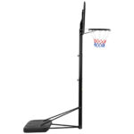 Tablica do koszykówki marki Gymrex doskonale sprawdzi się na boiskach przy szkołach, ośrodkach wypoczynkowych lub na osiedlowych podwórkach. Regulowany stojak w zakresie od 200 do 305 cm. Obręcz kosza ma średnicę 45 cm. Materiały wykonania (stal, PE, nylon) umożliwiają wykorzystywanie kosza na zewnątrz. Odporna na blaknięcie grafika na tablicy oraz trójkolorowa siatka doskonale znoszą deszcz, upał czy niską temperaturę. Podstawa po wypełnieniu piaskiem lub wodą gwarantuje zachowanie stabilności. Duże kółka (100 mm) zapewniają mobilność.