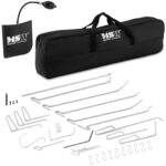 Zestaw do usuwania wgnieceń marki MSW sprawdzi się do niwelowania niewielkich wgnieceń w karoserii samochodowej, błotnikach motocykli, w obudowach sprzętów AGD oraz innych przedmiotów z blach. Zestaw składa się z uchwytu w kształcie litery T, klinów oraz zestawu haków w różnych rozmiarach. W komplecie znajdują się dwie torby do przenoszenia sprzętu.