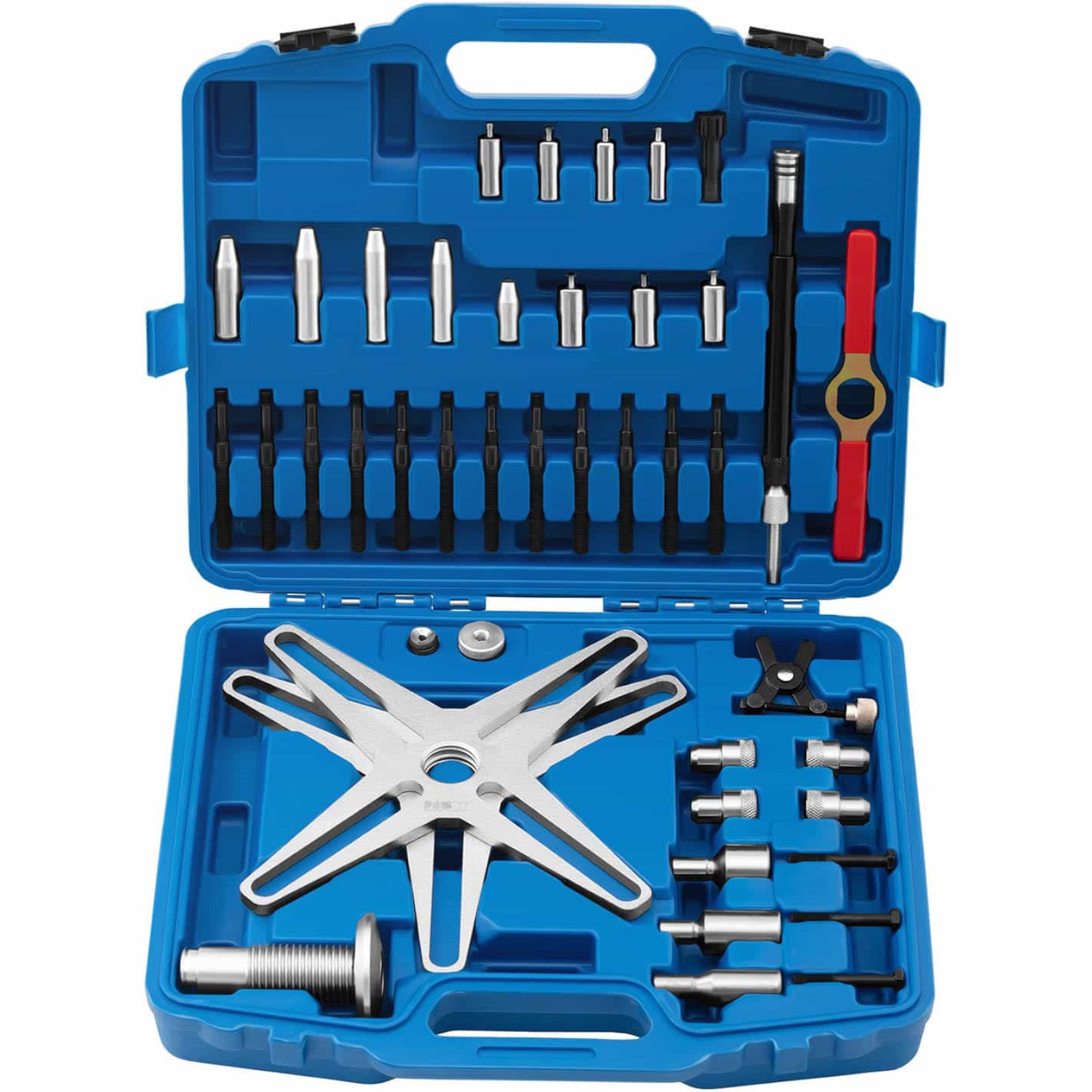 Praktyczny zestaw do montażu i demontażu sprzęgieł dwumasowych marki MSW nada się idealnie do profesjonalnych serwisów i warsztatów samochodowych. Model MSW-ETT-14 odznacza się łatwą obsługą oraz solidnością. Komplet jest odpowiedni do większości sprzęgieł dwumasowych typu SAC (samonastawnych) z 3 i 4 otworami. Pasuje do wielu modeli aut marek VW, Audi, BMW, Mercedes, Volvo, Opel, Vauxhall, Renault. Narzędzie umożliwia naprężanie wstępne, wyrównanie i resetowanie. W komplecie znajduje się walizka ułatwiająca transport.