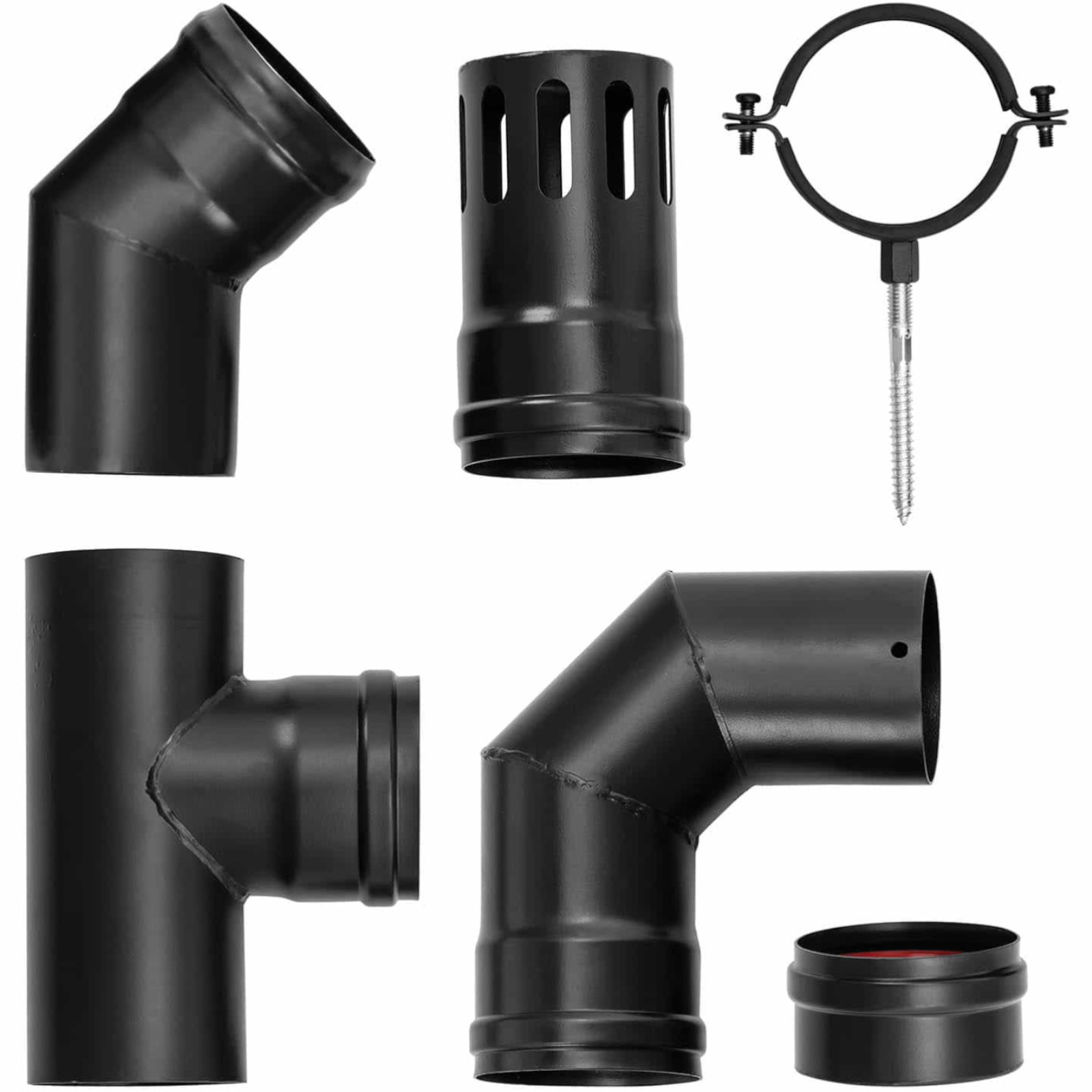 Zestaw rur do pieca na pellet marki MSW pozwala podłączyć piec na pellet do istniejącego komina. Elementy o regulowanej długości i średnicy wynoszącej 80 mm to elastyczne rozwiązanie dla niemal każdej przestrzeni i wszystkich popularnych pieców na pellet. Zestaw składa się z trzech rur na pellet o długości 100 cm i dwóch o długości 50 cm, trójnika z osłoną, kolanek 45° i 90°, rozety i zaślepki przeciwwiatrowej. Dzięki podkładce i silikonowym uszczelkom możesz profesjonalnie zmontować rurę do pieca na pellet fi 80 mm i zapewnić czyste spalanie bez uciążliwego dymu. Komplet wyprodukowano z wysokiej jakości stali węglowej o dużej wytrzymałości materiału. Wszystkie elementy zachwycają odpornością na ciepło i inne czynniki zewnętrzne.