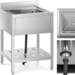 Zlew gastronomiczny marki Royal Catering sprawdzi się jako wyposażenie każdej profesjonalnej kuchni a także laboratorium. Głęboki zlew o wymiarach 400 x 400 x 255 mm pomieści duże naczynia oraz blachy lub garnki. Wysokie ścianki zapobiegają rozchlapywaniu wody. Odpływ umieszczony został na środku, specjalne sitko wyłapuje resztki i zapobiega zatykaniu rur. Rant o wysokości 100 mm chroni ściany przed zabrudzeniem. Mebel wykonany został ze stali nierdzewnej 304. Wyróżnia się gładkimi krawędziami, trwałością i odpornością. Regulowane nóżki pozwalają ustawić poziom nawet na nierównych powierzchniach.