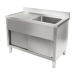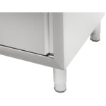 Szafka stalowa zlewozmywakowa z drzwiczkami przesuwanymi niemieckiego producenta marki Royal Catering wykonana jest z wysokiej jakości stali nierdzewnej, co gwarantuje odporność na korozję oraz umożliwia długotrwałość użytkowania.